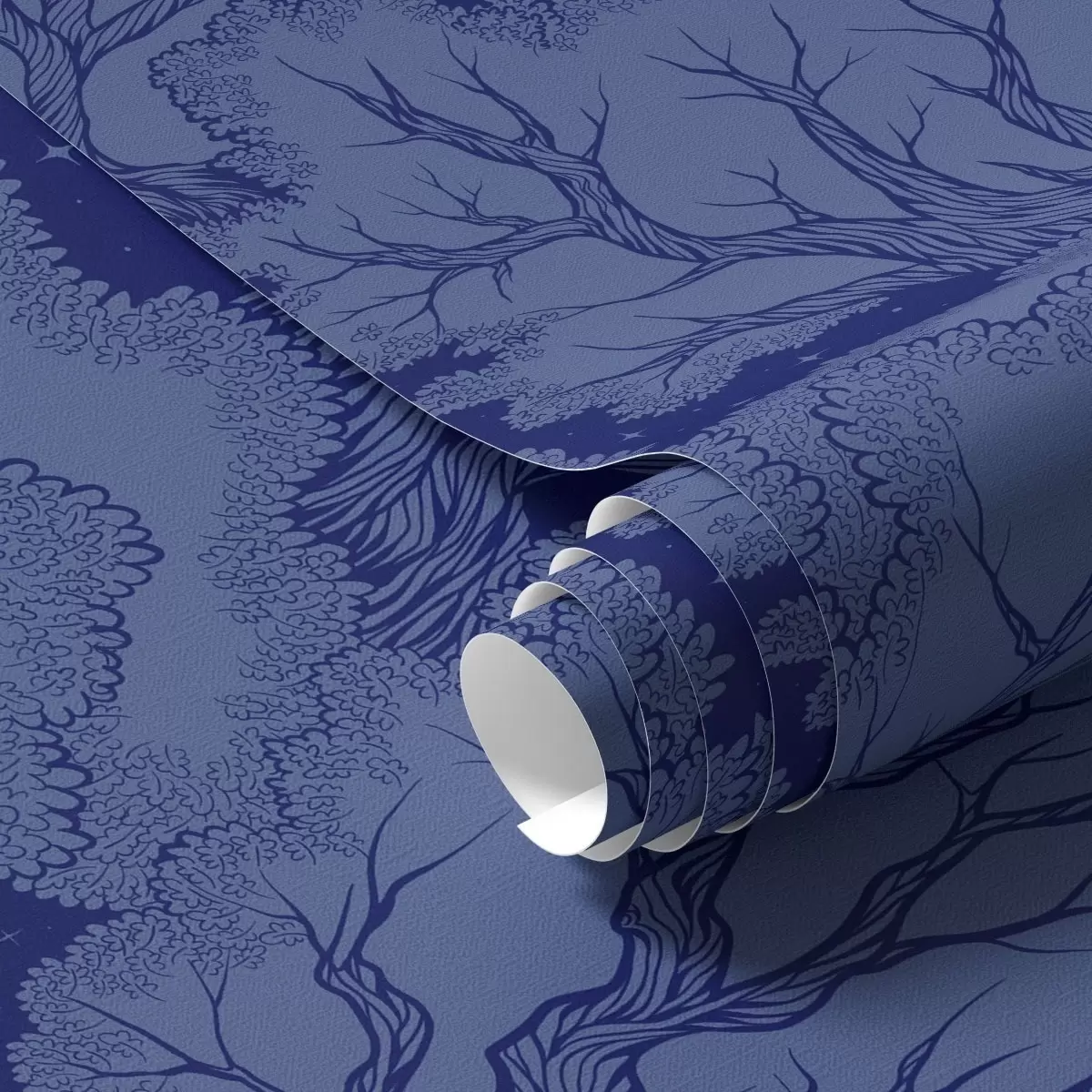 Papel tapiz Siluetas de árboles bajo un cielo estrellado en tonos azules Nr. a00798