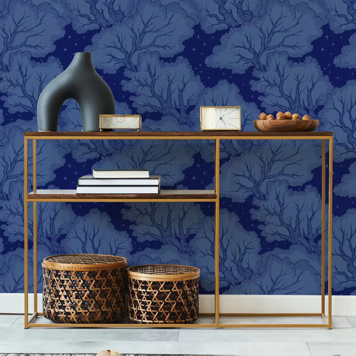 Papel tapiz Siluetas de árboles bajo un cielo estrellado en tonos azules Nr. a00798