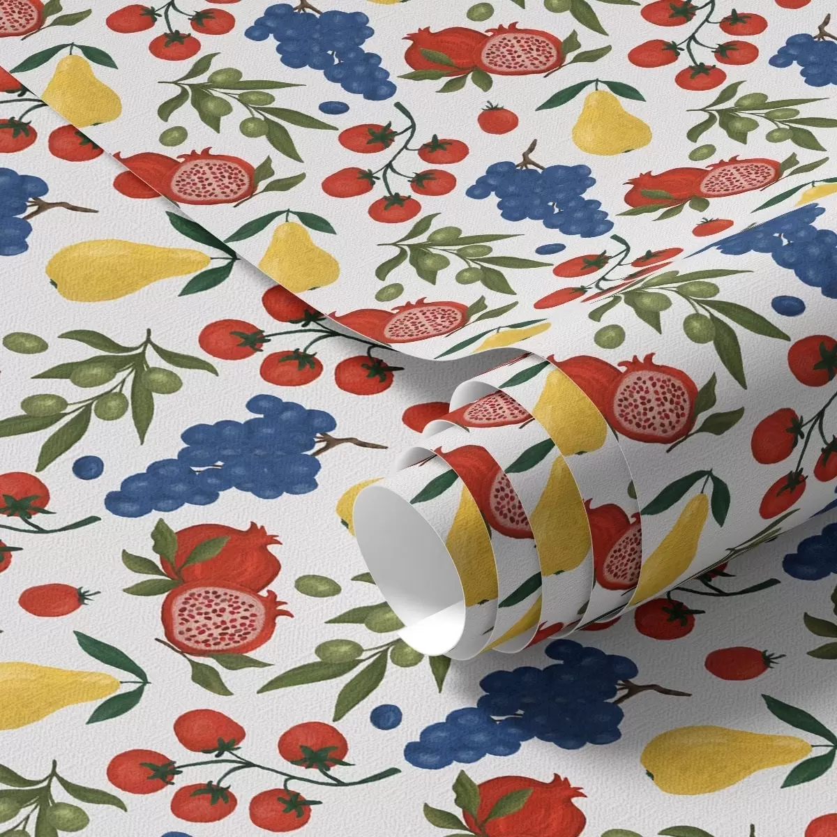 Papel tapiz Fruta jugosa: granadas, uvas, peras sobre fondo blanco Nr. a00801