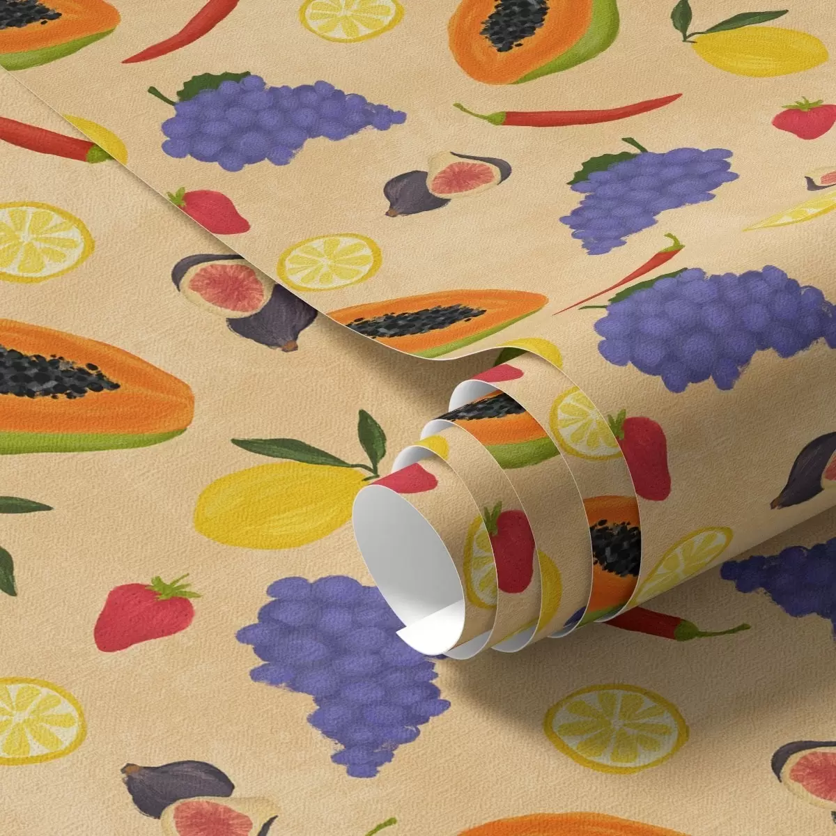 Papel tapiz Papaya, cítricos y bayas sobre un fondo cálido y rico Nr. a00803v1