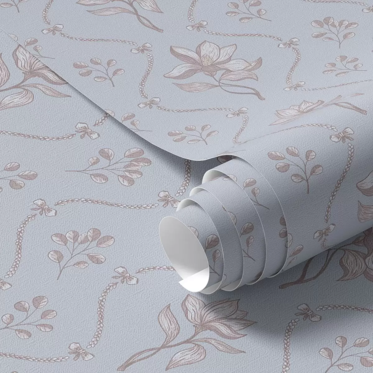 Papel tapiz Pequeñas flores y cintas en tonos azul pálido Nr. a00808v1
