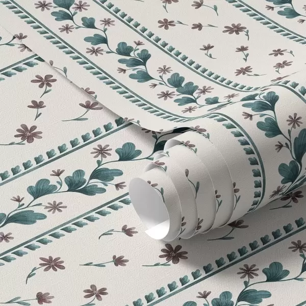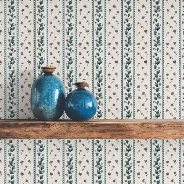 Papel tapiz Rayas florales verticales en tonos azul y marrón Nr. a00811