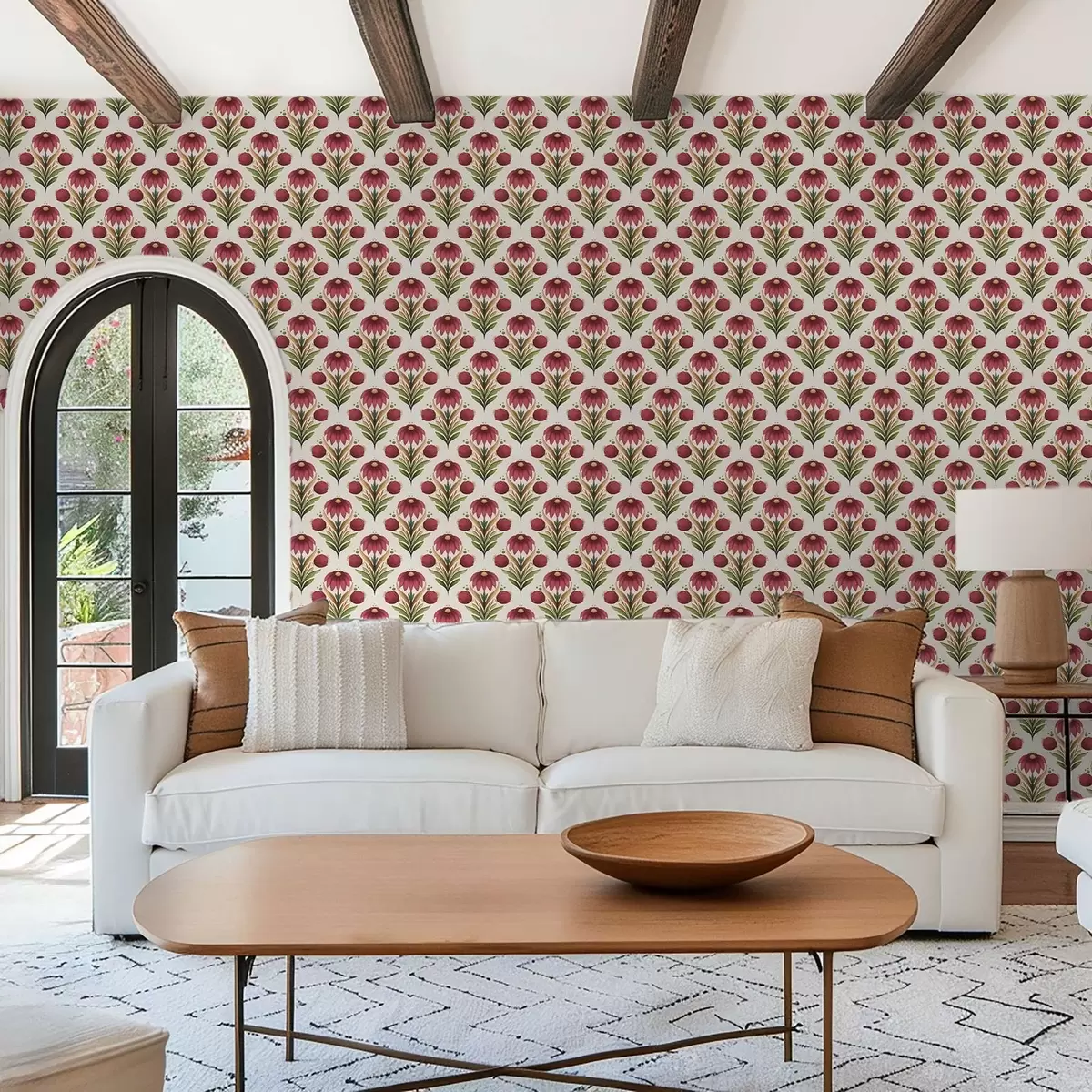 Papel tapiz Adorno floral simétrico en intensos tonos rojos y verdes Nr. a00812v4