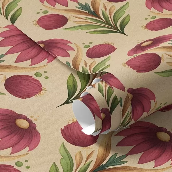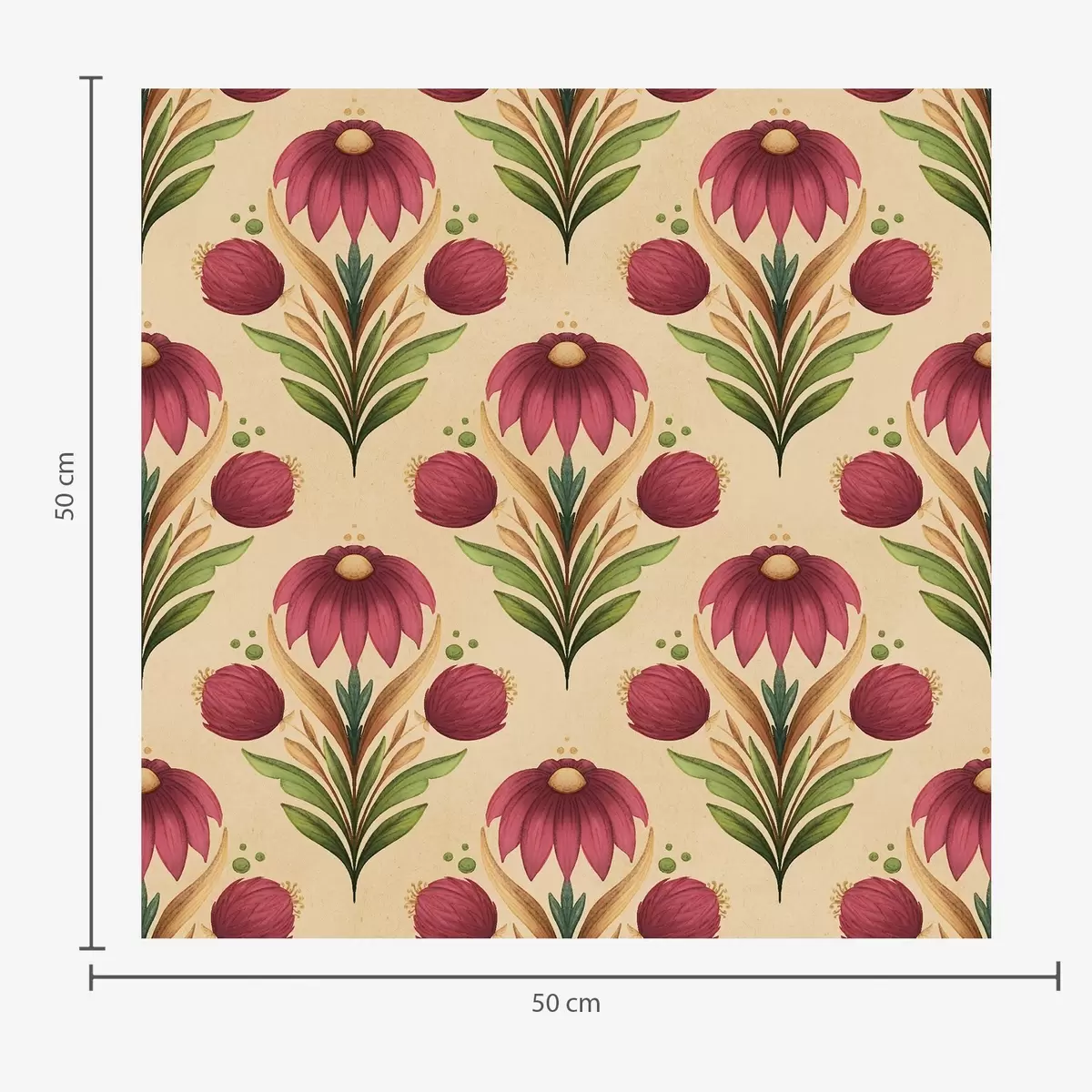 Papel tapiz Adorno floral simétrico sobre fondo beige cálido Nr. a00812v6