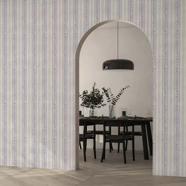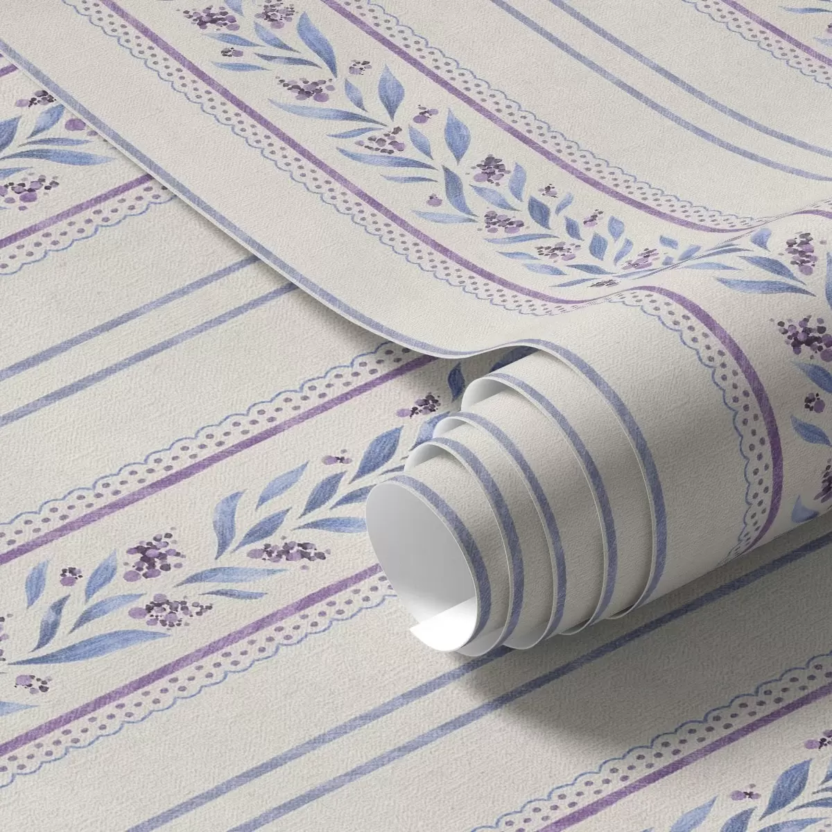 Papel tapiz Rayas verticales con guirnaldas de lavanda, fondo beige Nr. a00813v1