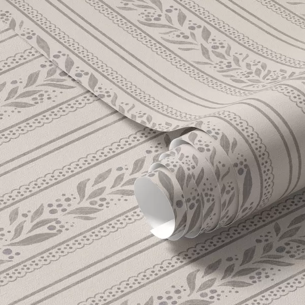 Papel tapiz Rayas con encaje y ramitas gris-beige Nr. a00814
