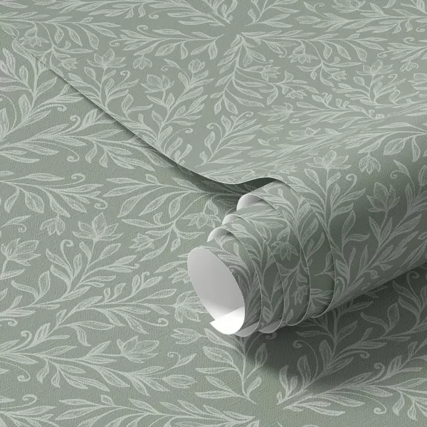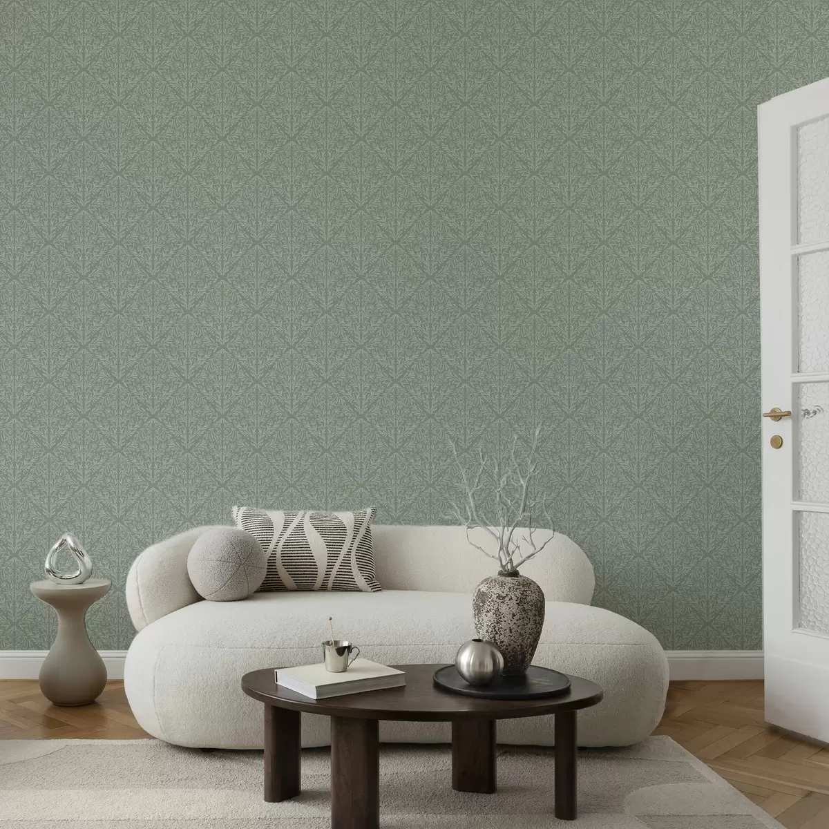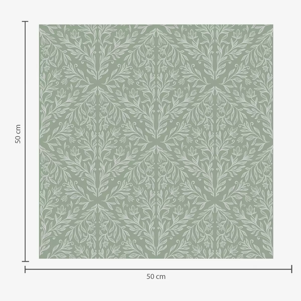 Papel tapiz Damasco botánico sobre fondo menta-oliva Nr. a00815