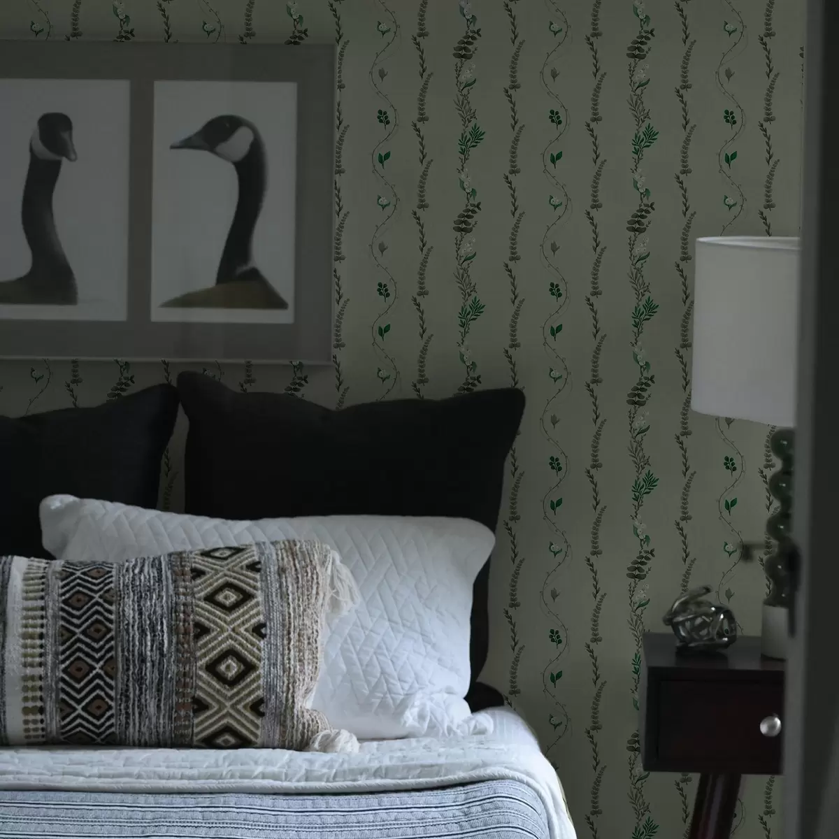 Papel tapiz Enredaderas verticales y ramitas en verde apagado Nr. a00817v1