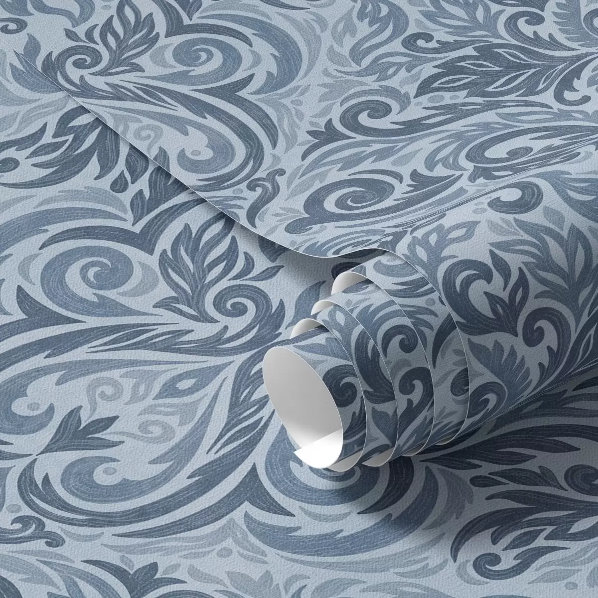 Papel tapiz Damasco en tonos azules fríos, contraste más fuerte. Nr. a00826v2