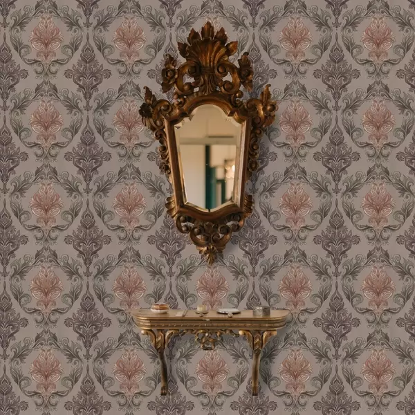 Papel tapiz Damasco en tonos marrón-terracota, fondo gris cálido Nr. a00828v2