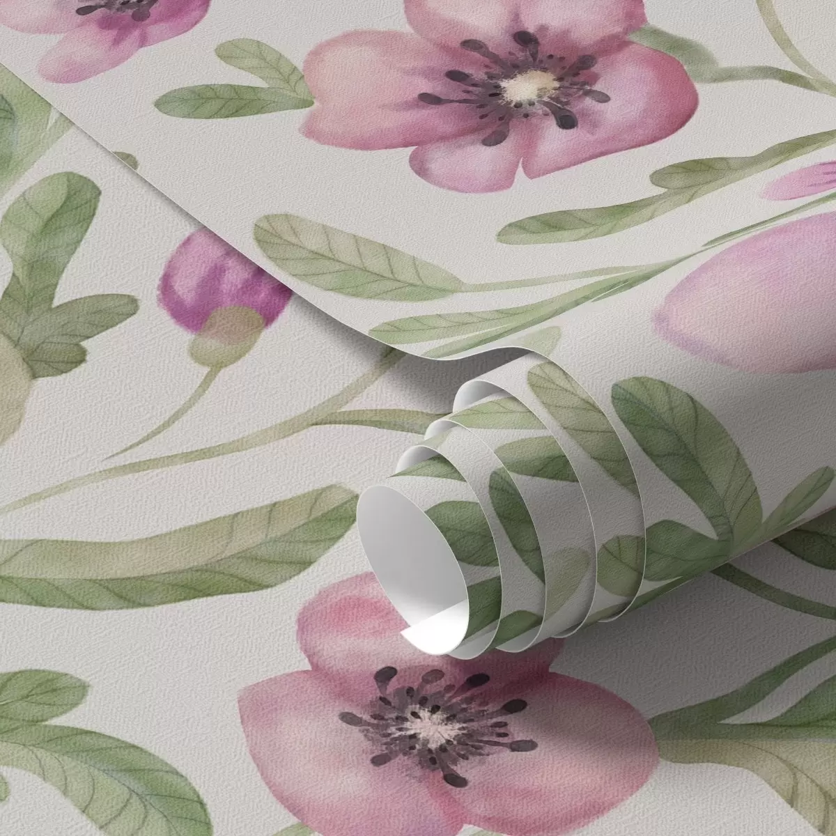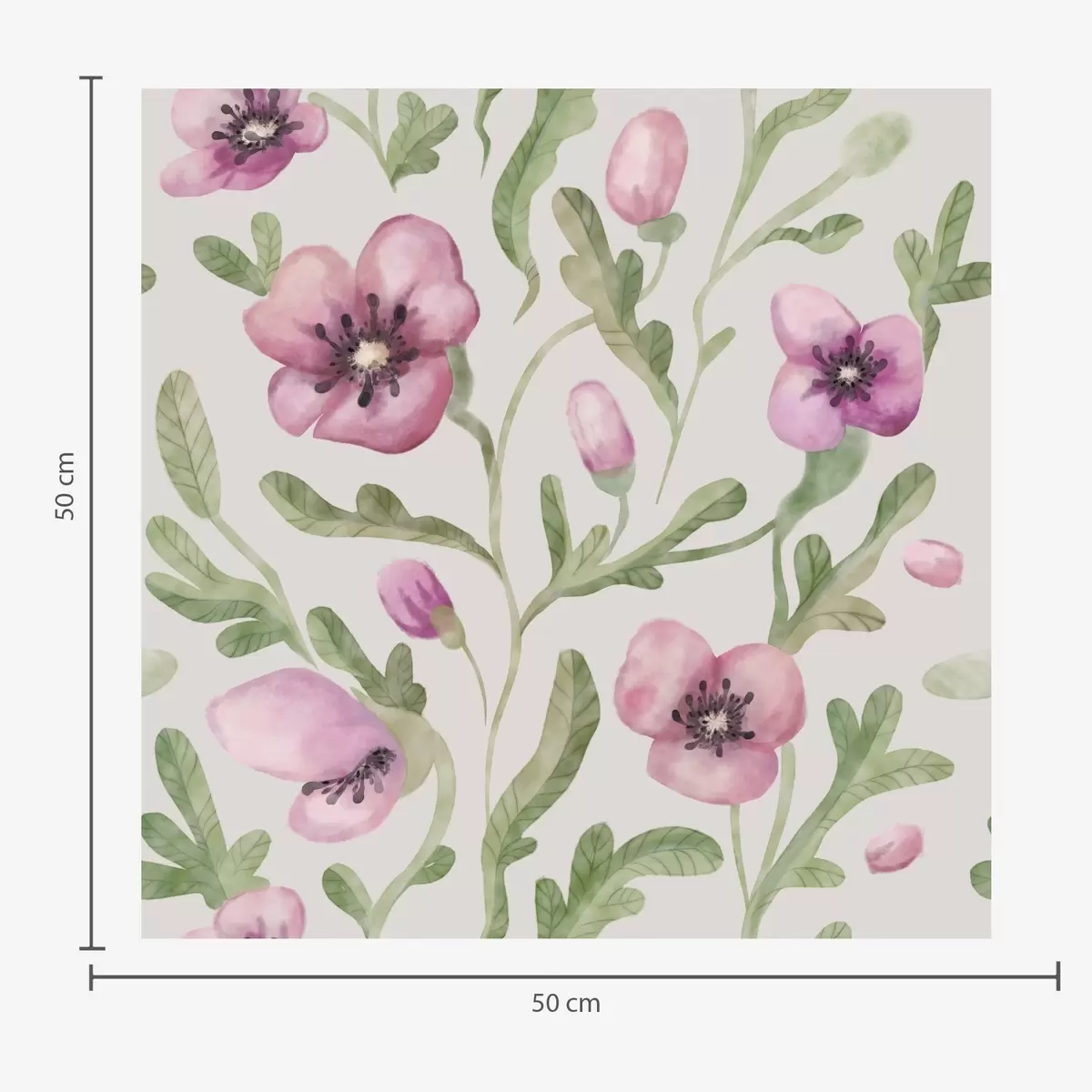 Papel tapiz Delicadas amapolas rosas con hojas en técnica acuarela Nr. a00830