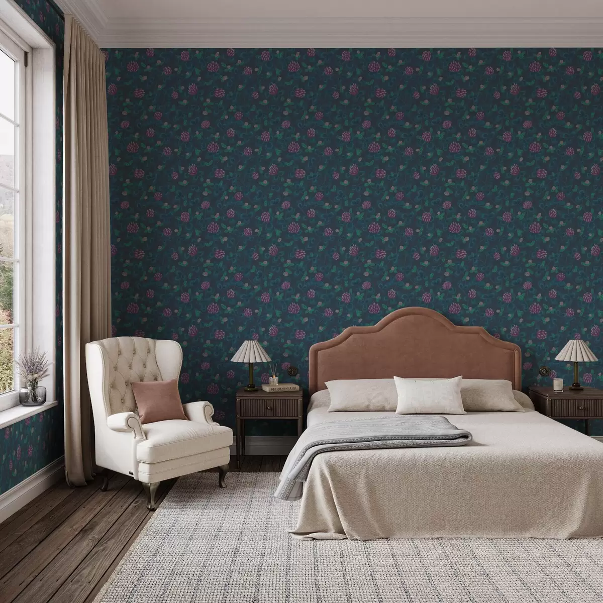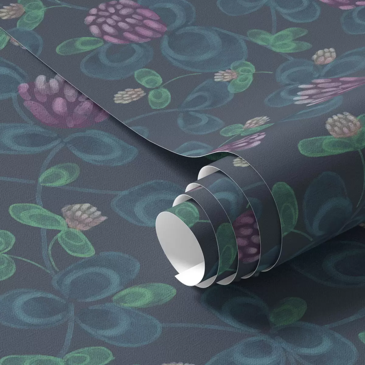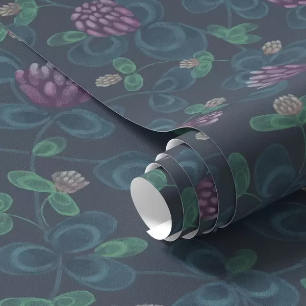 Papel tapiz Trébol con flores moradas sobre fondo azul oscuro Nr. a00836