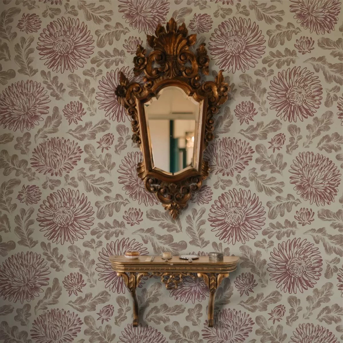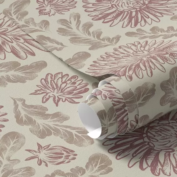 Papel tapiz Crisantemos con toques de vino sobre fondo crema Nr. a00840v1