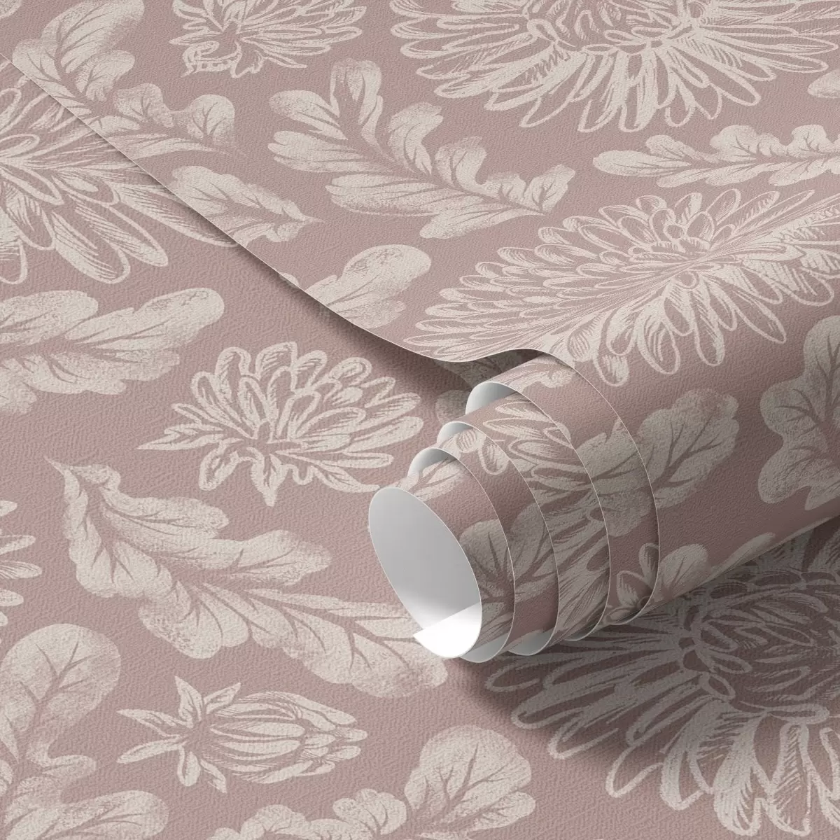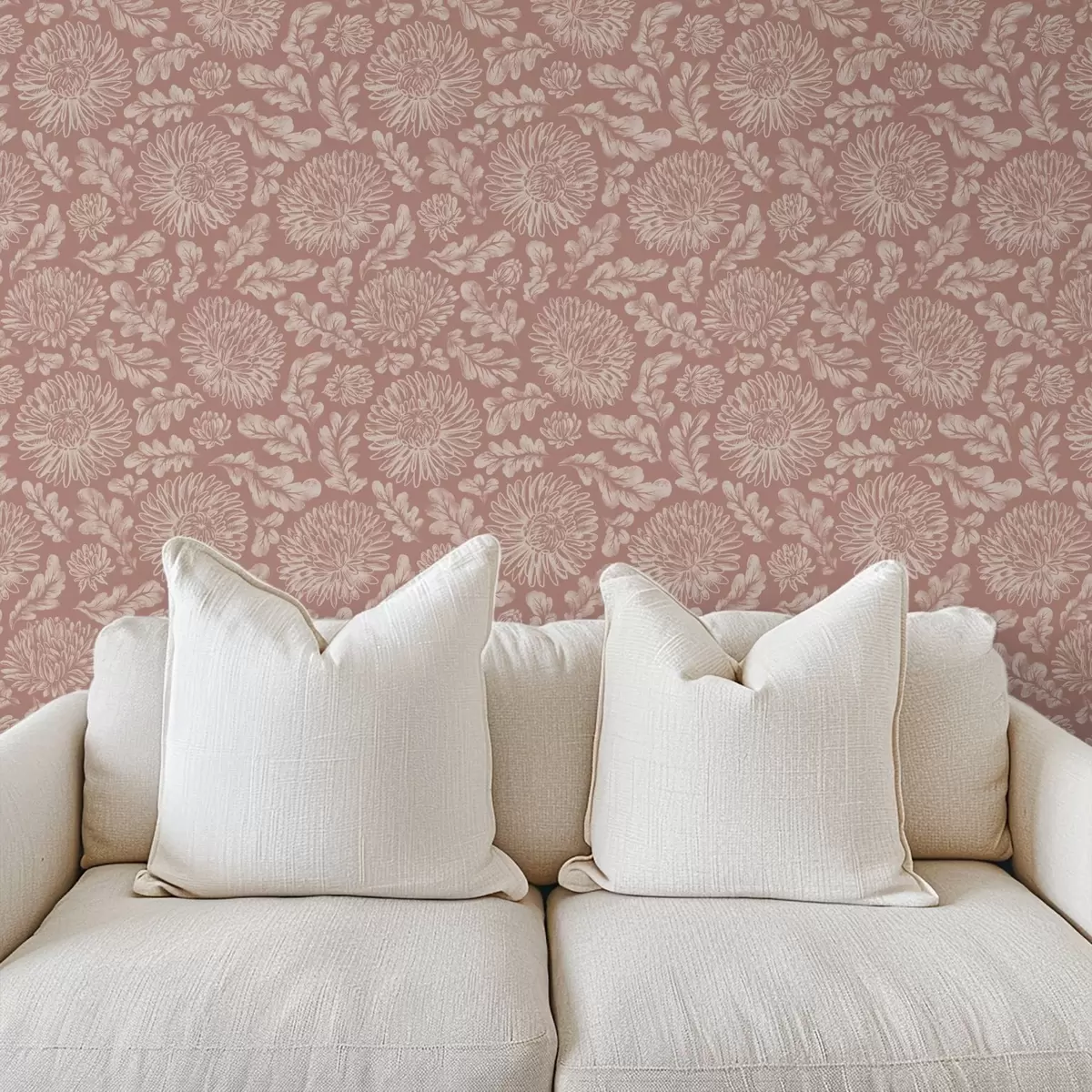 Papel tapiz Crisantemos color crema sobre fondo rosa empolvado Nr. a00840v2