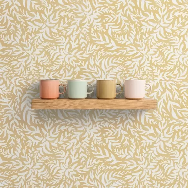 Papel tapiz Patrón de hojas blancas sobre ocráceo cálido, ritmo arremolinado Nr. a00845