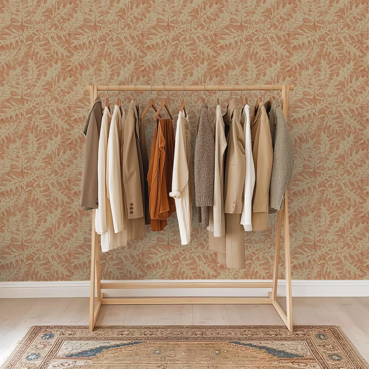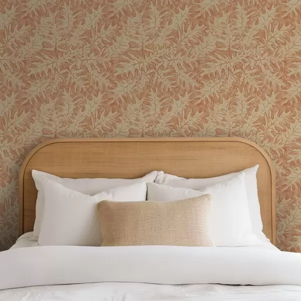 Papel tapiz Hojas grandes de roble en terracota sobre fondo crema Nr. a00846