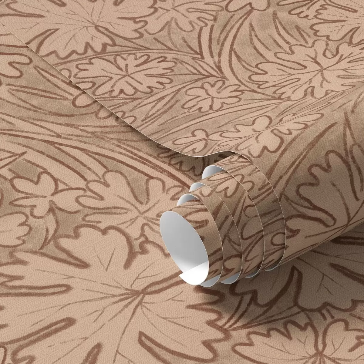 Papel pintado Hojas y hierbas del campo en una paleta de colores terracota y beige. a00847