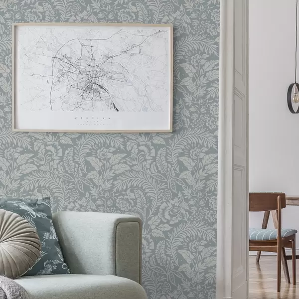 Papel tapiz Estampado floral monocromo sobre fondo gris azulado Nr. a00859