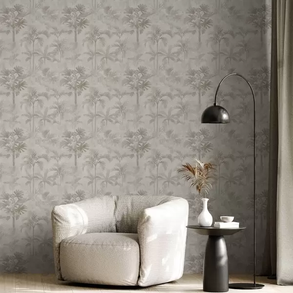 Papel tapiz Palmeral brumoso en cálidos tonos beige Nr. a00881