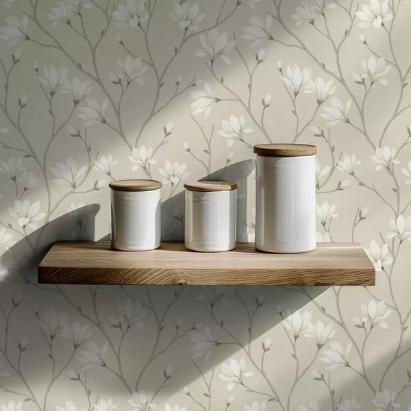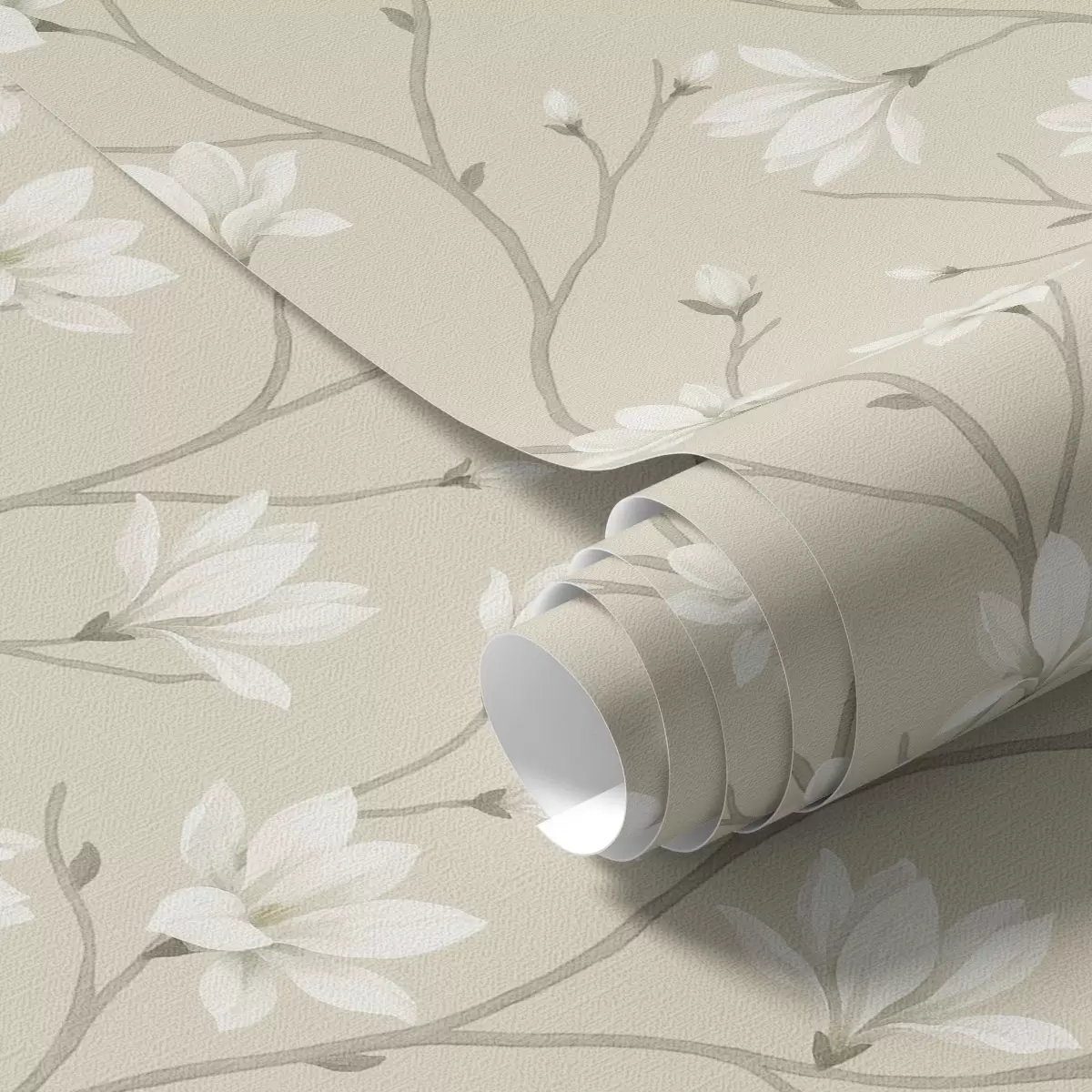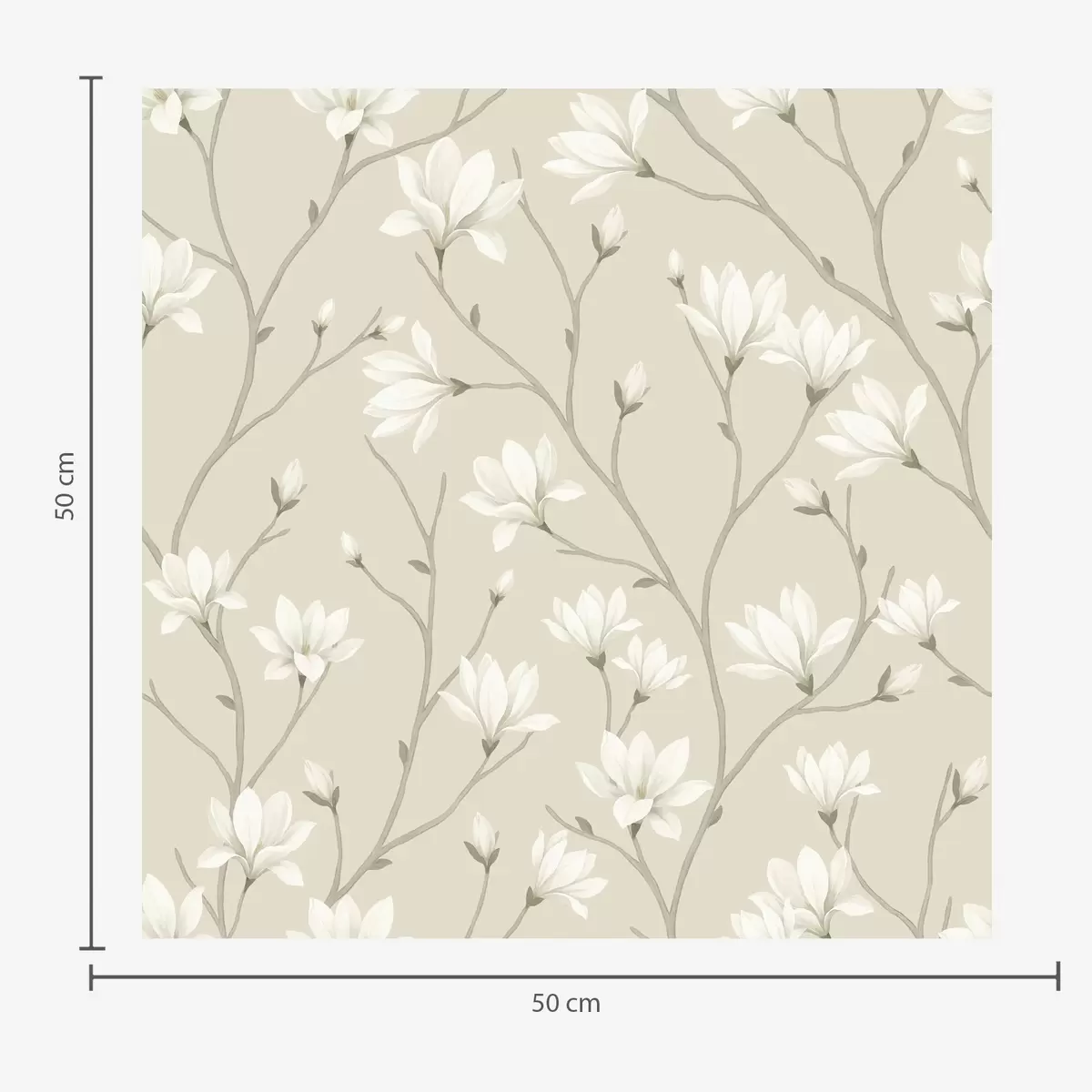 Papel tapiz Magnolias claras en esbeltas ramas beige Nr. a00890