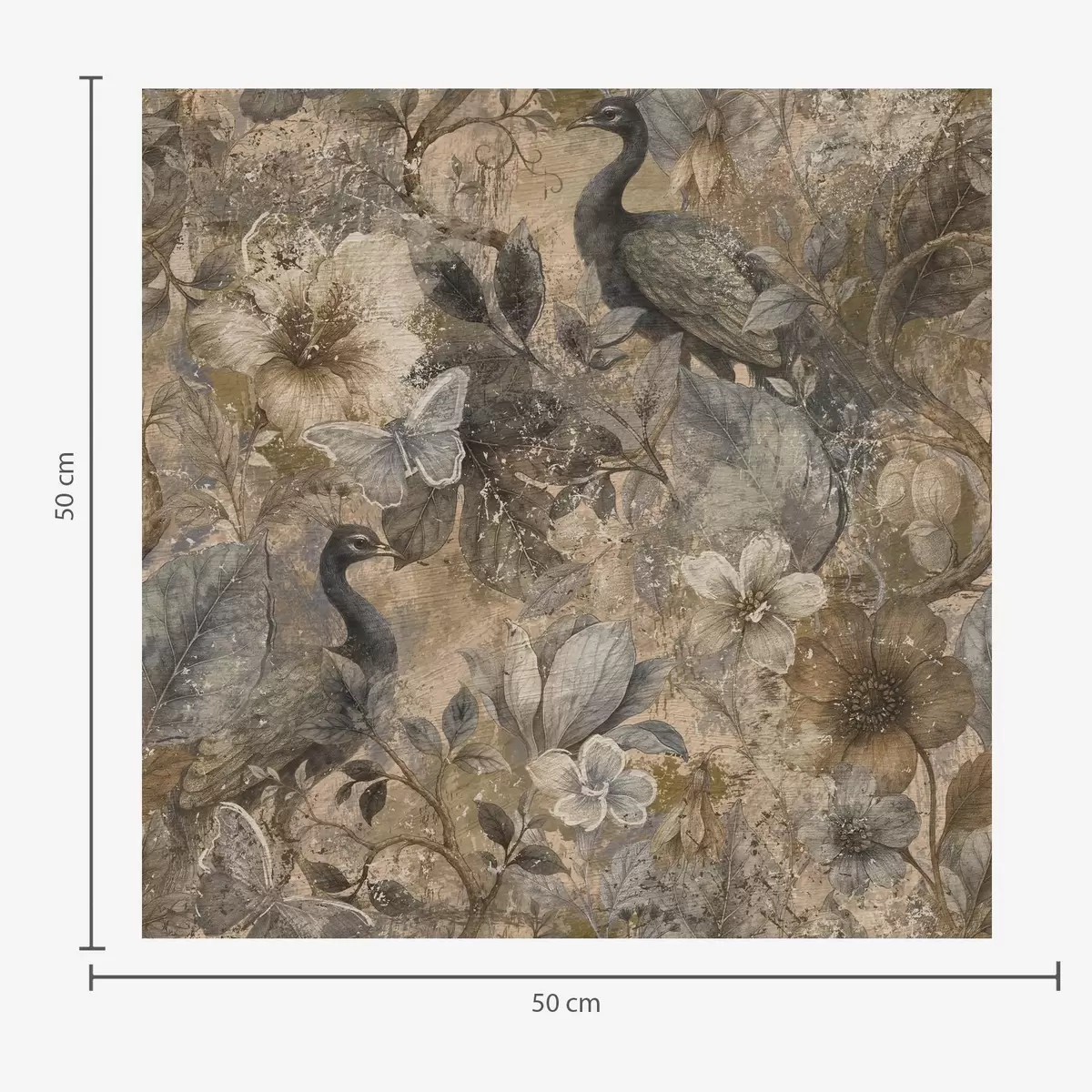 Papel tapiz Collage floral envejecido con pavos reales y mariposas Nr. a00897