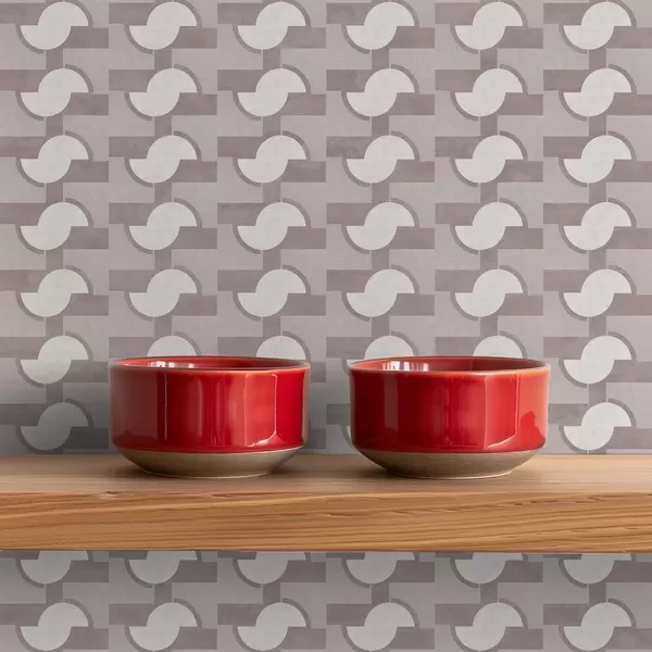 Papel tapiz Azulejos modulares malva con semicírculos unidos Nr. a00915