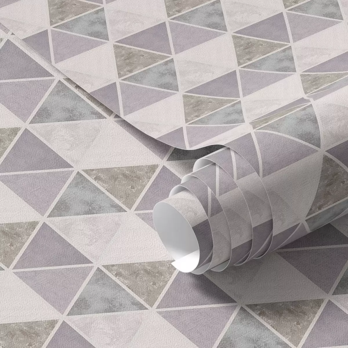 Papel tapiz Triángulos con inserciones texturizadas, mezcla de gris lila y gris. Nr. a00917