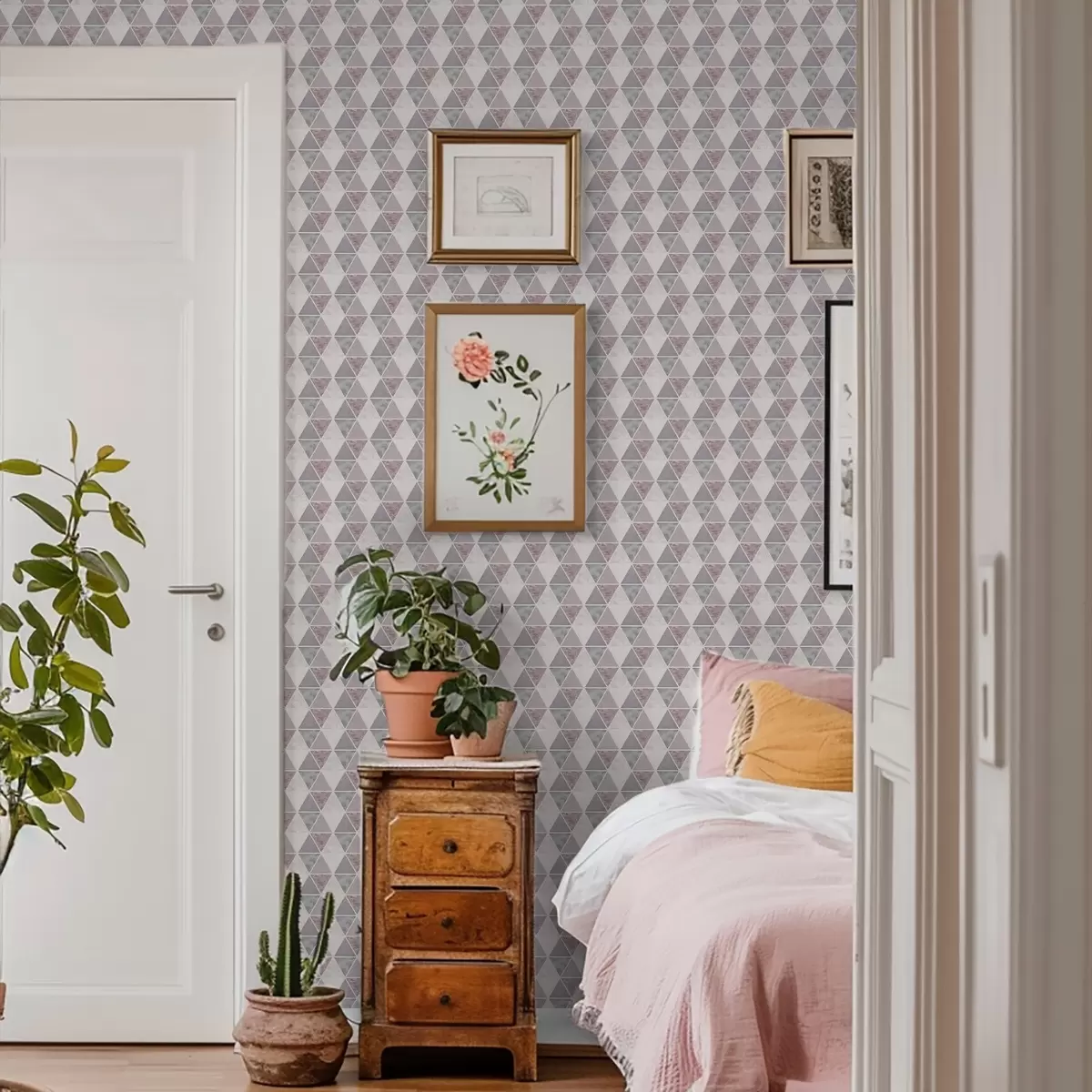 Papel tapiz Triángulos suaves en tonos gris-rosa y empolvados. Nr. a00918