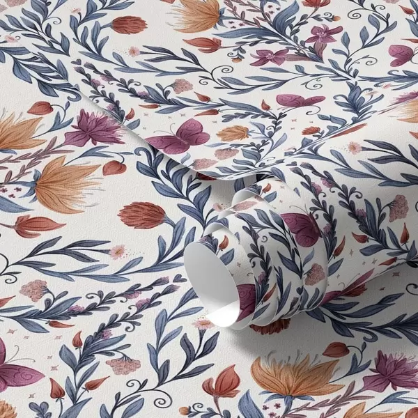 Papel tapiz Damasco floral con mariposas sobre fondo crema cálido Nr. a00926v2