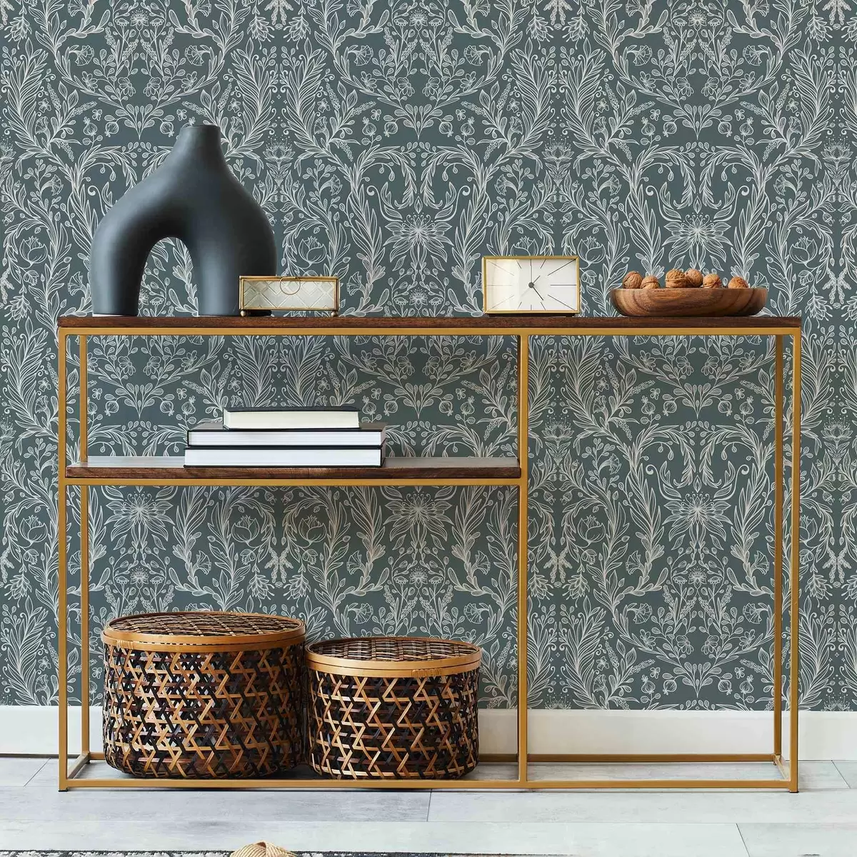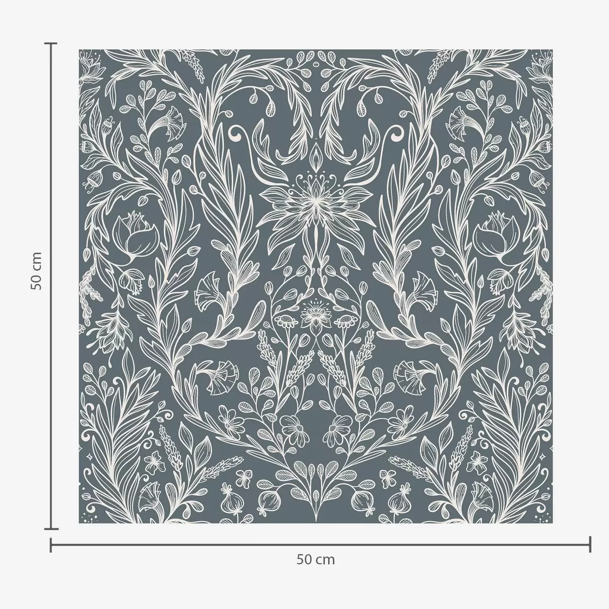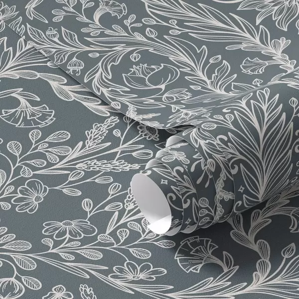 Papel tapiz Adorno floral lineal sobre fondo gris azulado. Nr. a00929v1