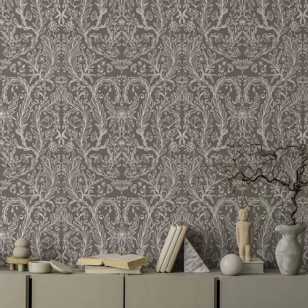 Papel tapiz Estampado botánico monocromático en marrón cálido Nr. a00929v2