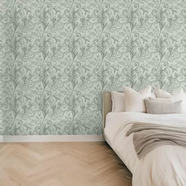 Papel tapiz Hojas rizadas de menta suave con delicadas líneas gris verdosas Nr. a00935v3