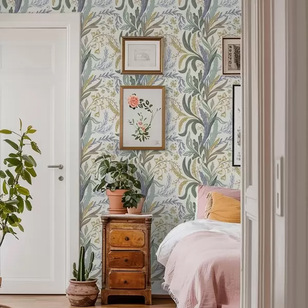Papel tapiz Exuberante adorno floral en una suave paleta de colores pastel Nr. a00939