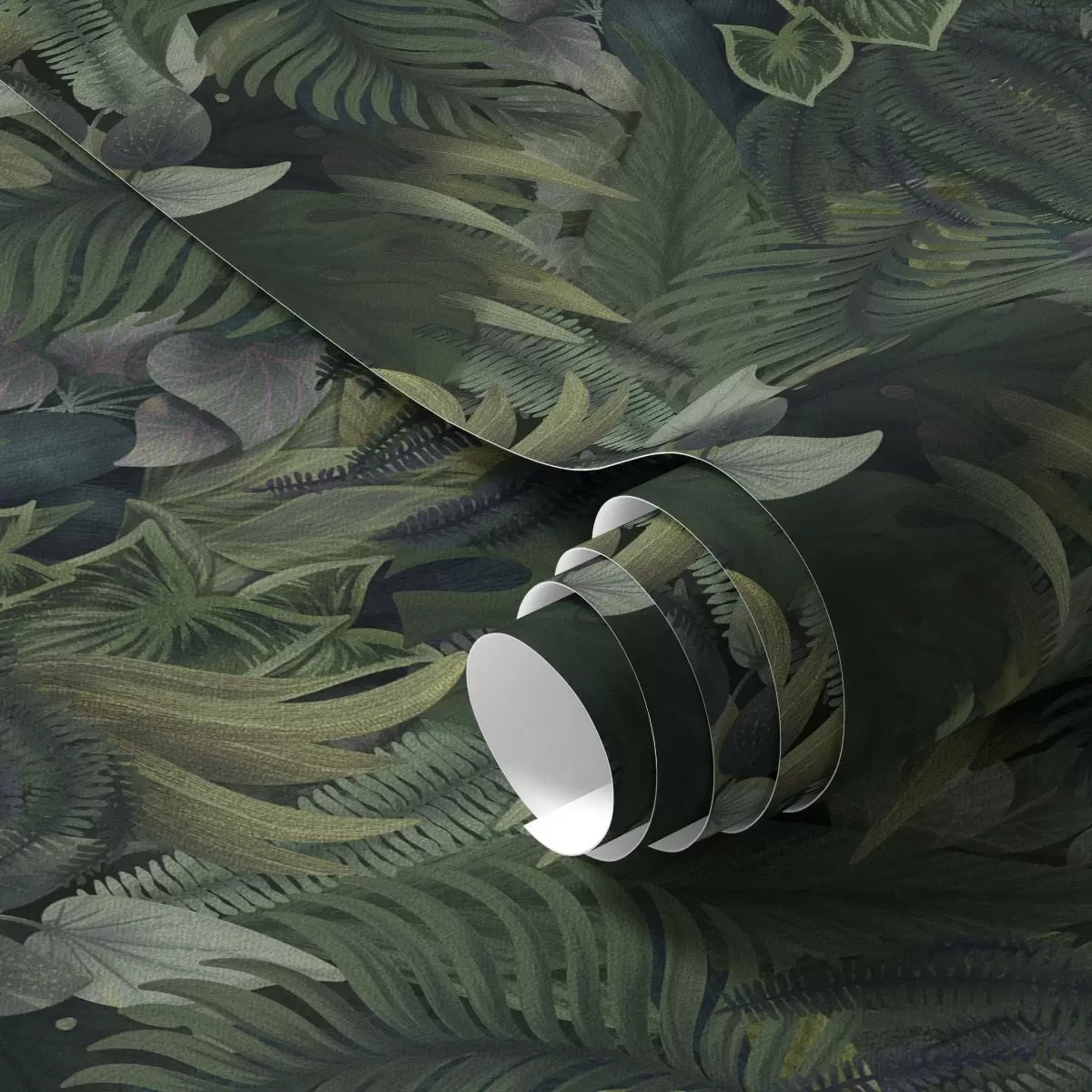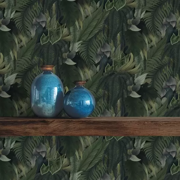 Papel tapiz Denso follaje tropical en matorrales de color verde intenso. Nr. a00943