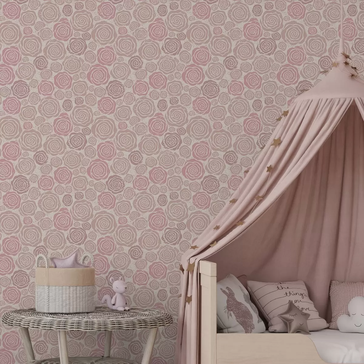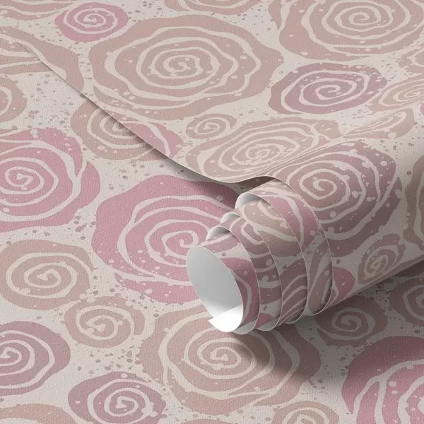 Papel tapiz Rosas rosadas en espiral y salpicaduras sobre un fondo claro. Nr. a00955