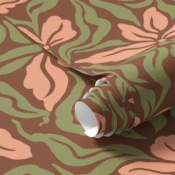 Papel tapiz Flores de melocotonero y vegetación sobre un fondo marrón oscuro Nr. a00958v2