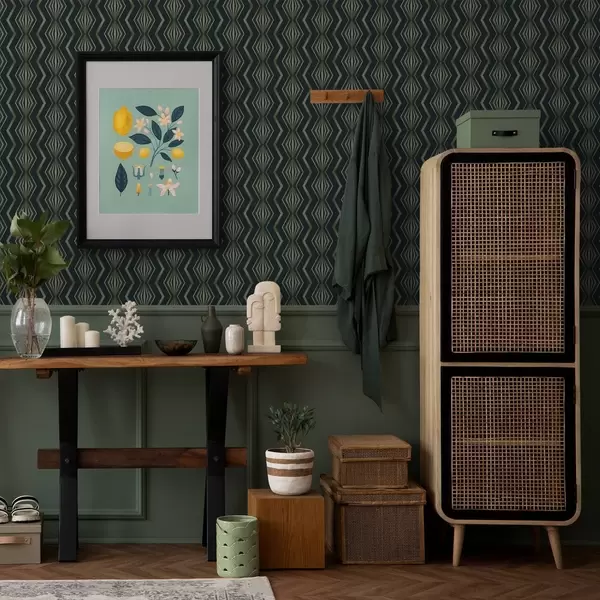 Papel tapiz Patrón geométrico de rombos en color verde azulado oscuro Nr. a00973v1