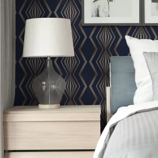 Papel tapiz Fondo azul oscuro con rombos geométricos y zigzags. Nr. a00974v2