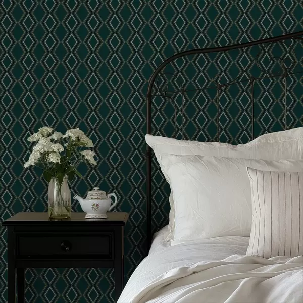 Papel tapiz Fondo verde azulado oscuro con filas verticales de rombos. Nr. a00976