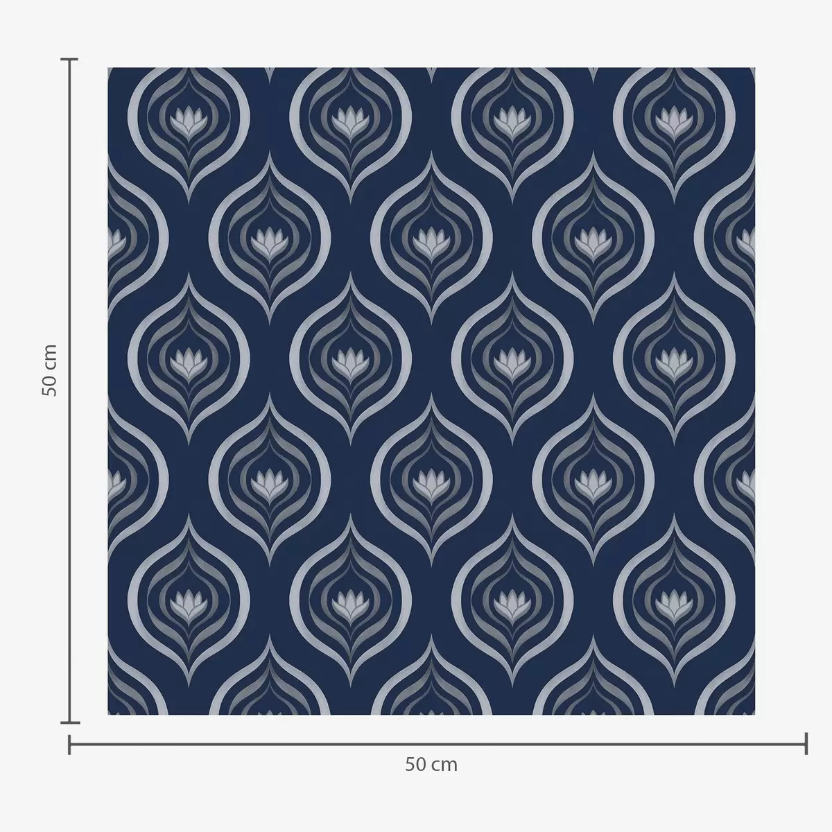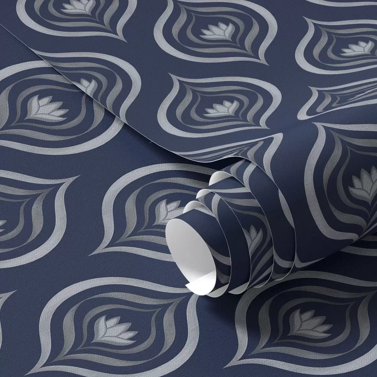 Papel tapiz Motivos de gotas contrastantes con una flor sobre un fondo azul marino oscuro. Nr. a00977v1