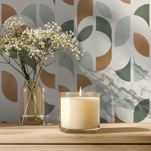 Papel tapiz Columnas verticales de medias lunas y hojas, verde-terracota Nr. a00986