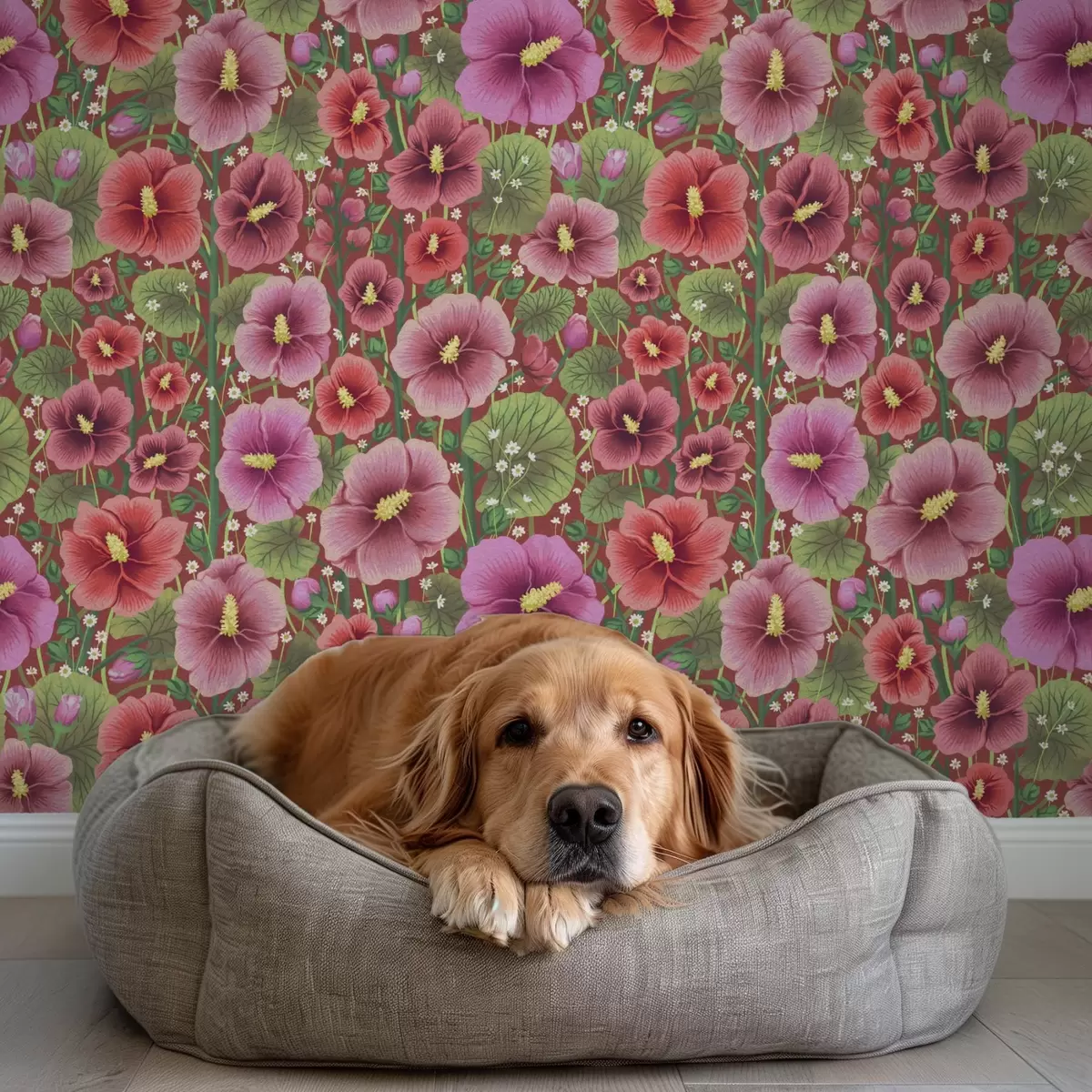 Papel tapiz Hibisco en flor sobre un cálido fondo marrón rojizo. Nr. a00993v1
