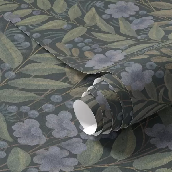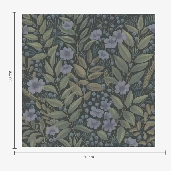 Papel tapiz Bayas silvestres y flores de lila sobre fondo carbón. Nr. a00994v1