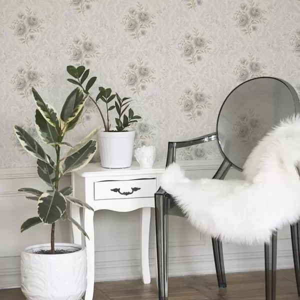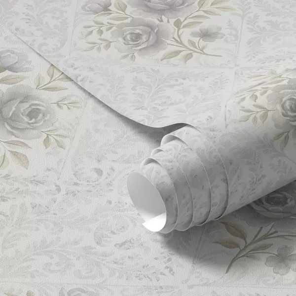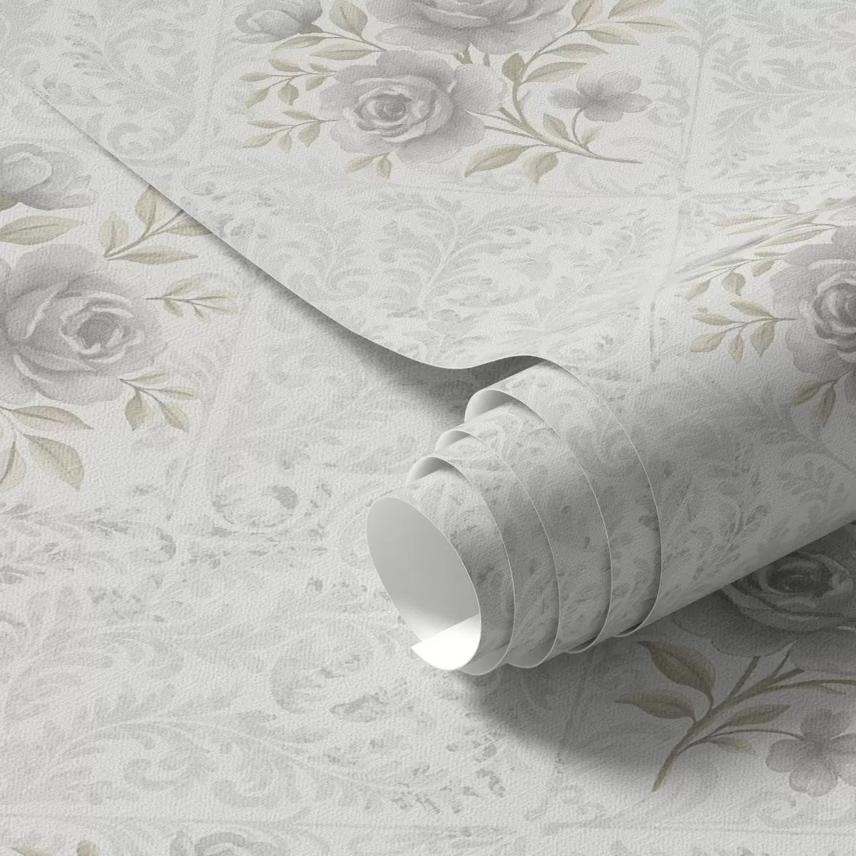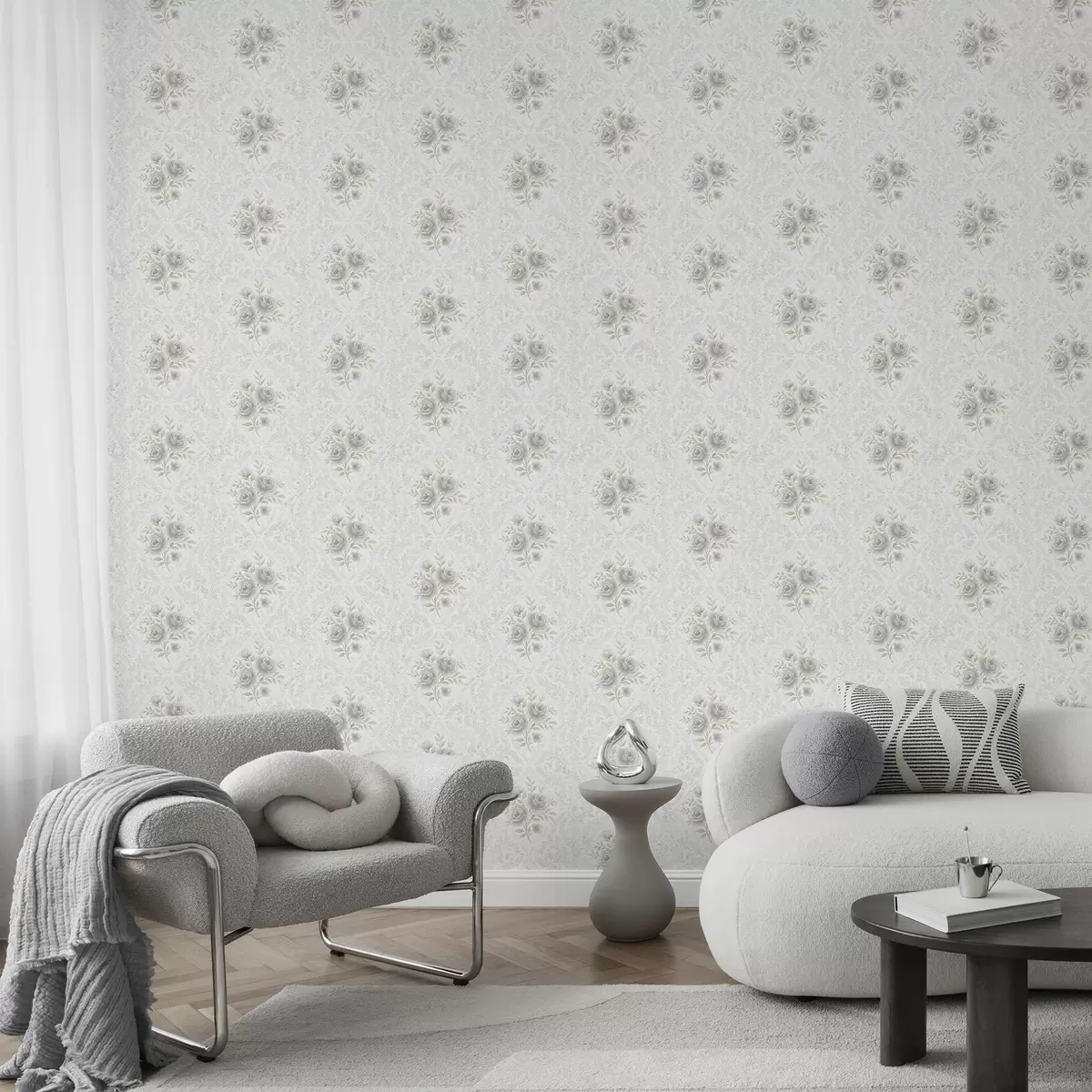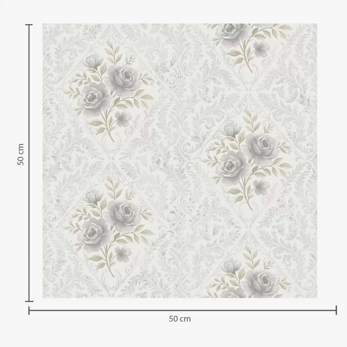 Papel tapiz Diseño damasco claro con rosas grises en rombos suaves Nr. a01024