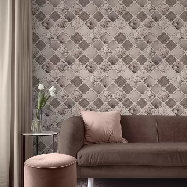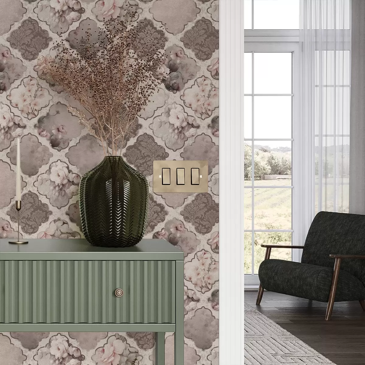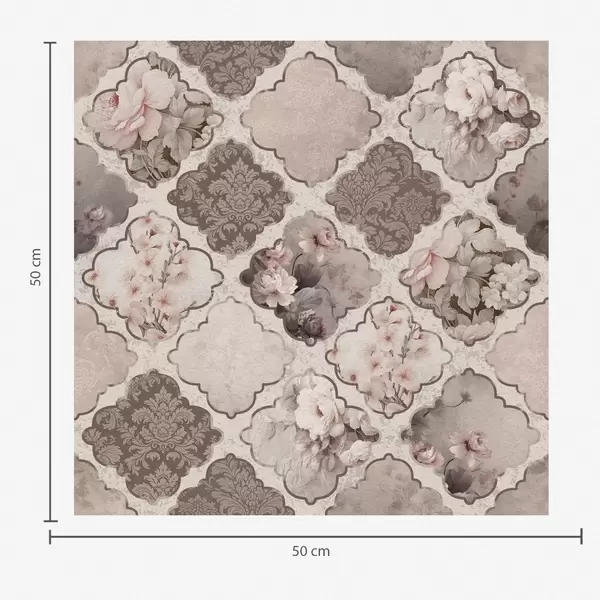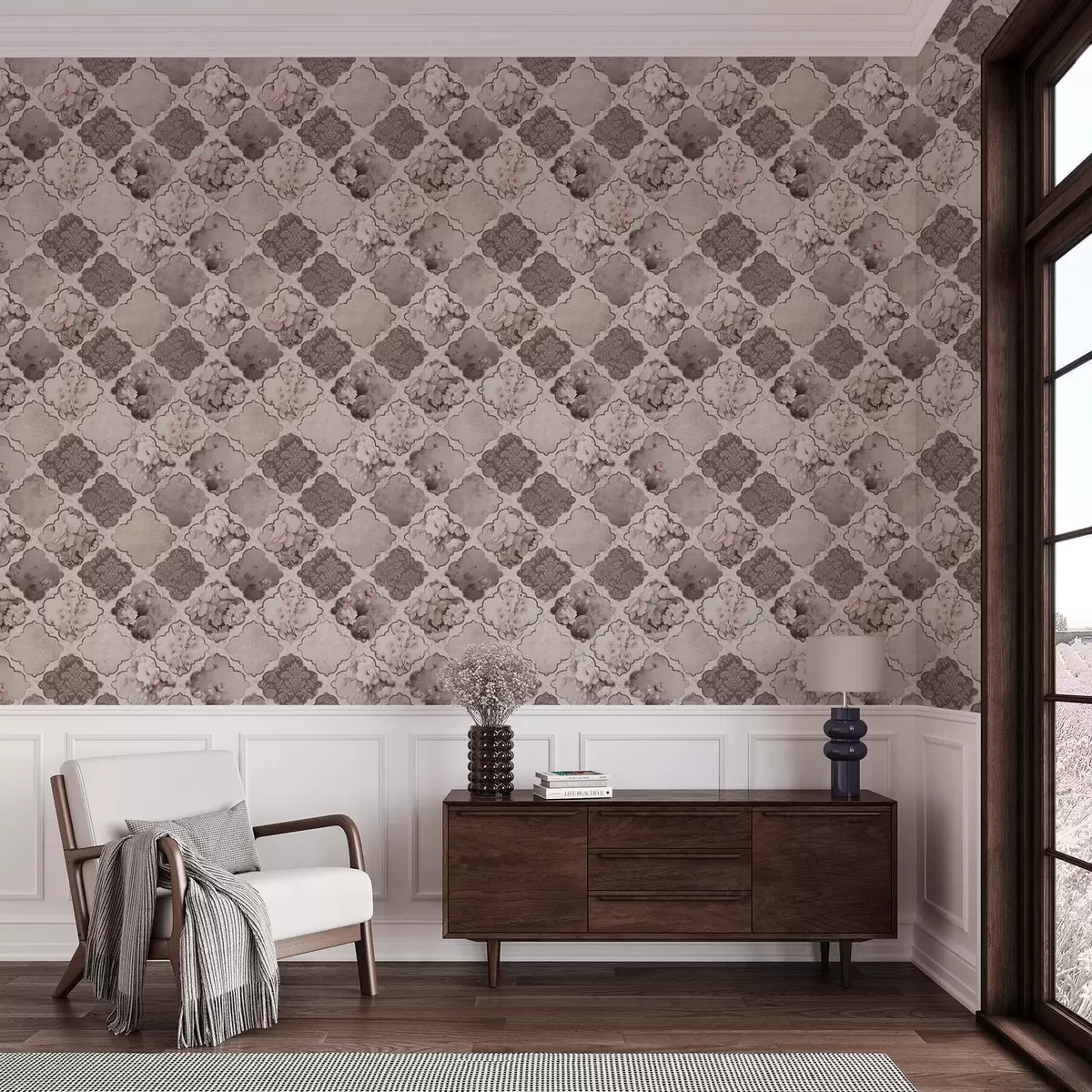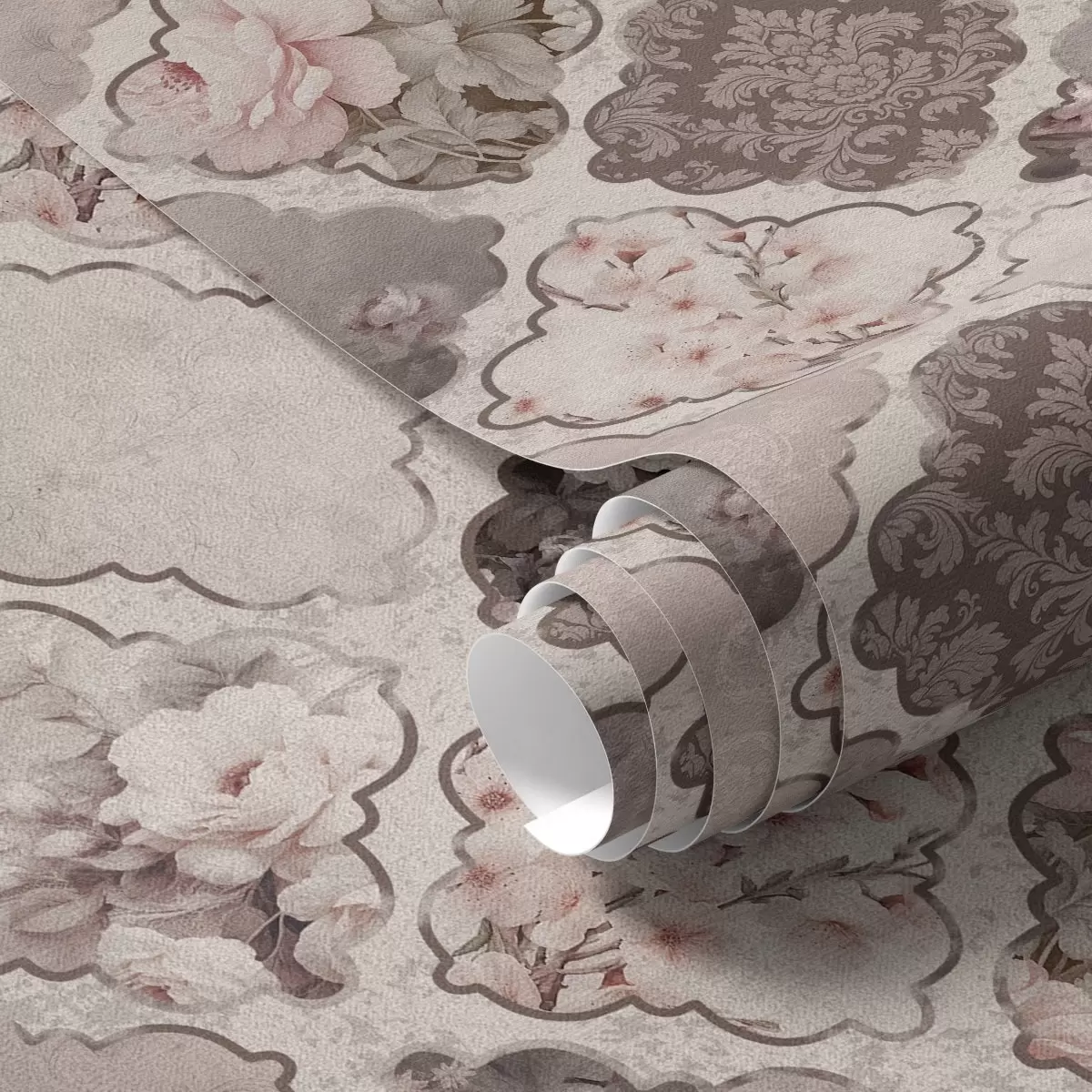 Papel tapiz Romántico mosaico de medallones florales en tonos apagados. Nr. a01027