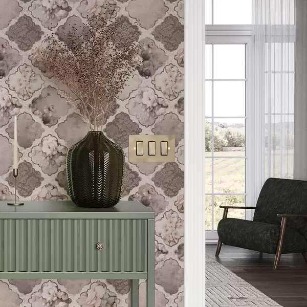 Papel tapiz Romántico mosaico de medallones florales en tonos apagados Nr. a01027
