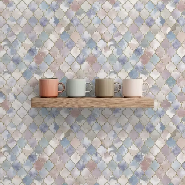 Papel tapiz Mosaico en tonos pastel de fragmentos marroquíes con un suave resplandor Nr. a01039