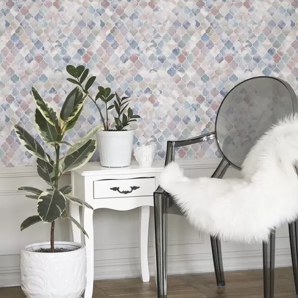 Papel tapiz Mosaico en tonos pastel claros con suaves formas marroquíes Nr. a01039v1