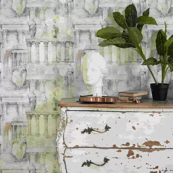Papel tapiz Estatuas y columnas antiguas en suaves tonos beige grisáceos Nr. a01041