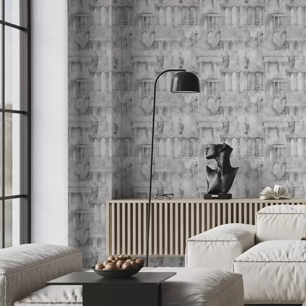 Papel tapiz Estatuas y columnas clásicas en tonos grises descoloridos Nr. a01041v1